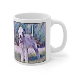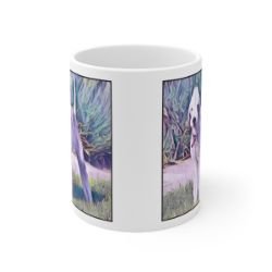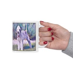 Keep cozy and warm with a nice cuppa, featuring the beloved Bedlington Terrier dog breed stylized in our Coloromo Lavender Ice art on a ceramic mug. Lead and BPA-free, these durable mugs are also microwave & dishwasher-safe. Made of white, resilient ceramic in an 11-ounce size, this is the perfect gift for coffee, tea, and hot chocolate lovers.