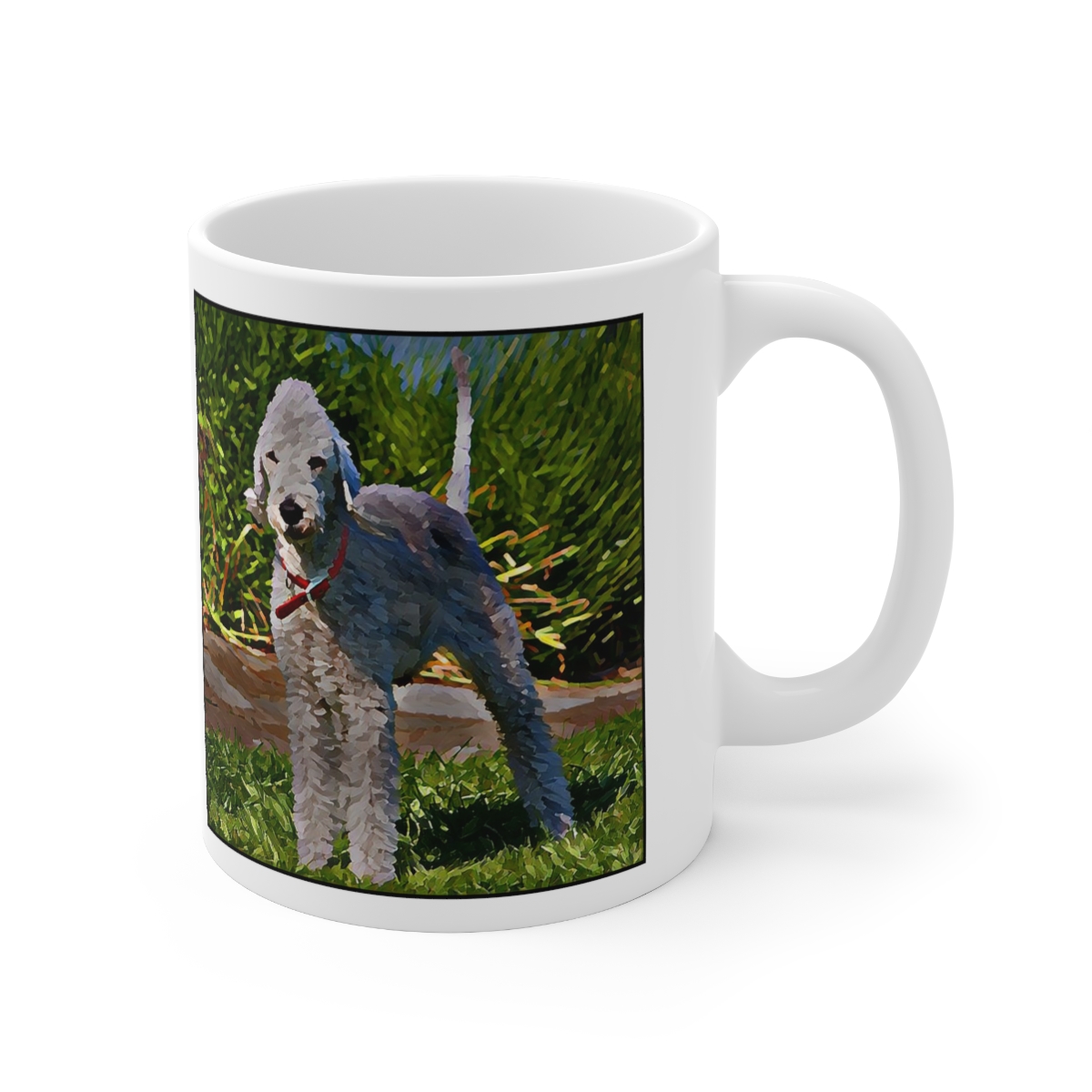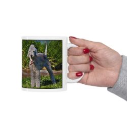 Keep cozy and warm with a nice cuppa, featuring the beloved Bedlington Terrier dog breed stylized in our Coloromo Lord Lil Bit art on a ceramic mug. Lead and BPA-free, these durable mugs are also microwave & dishwasher-safe. Made of white, resilient ceramic in an 11-ounce size, this is the perfect gift for coffee, tea, and hot chocolate lovers.