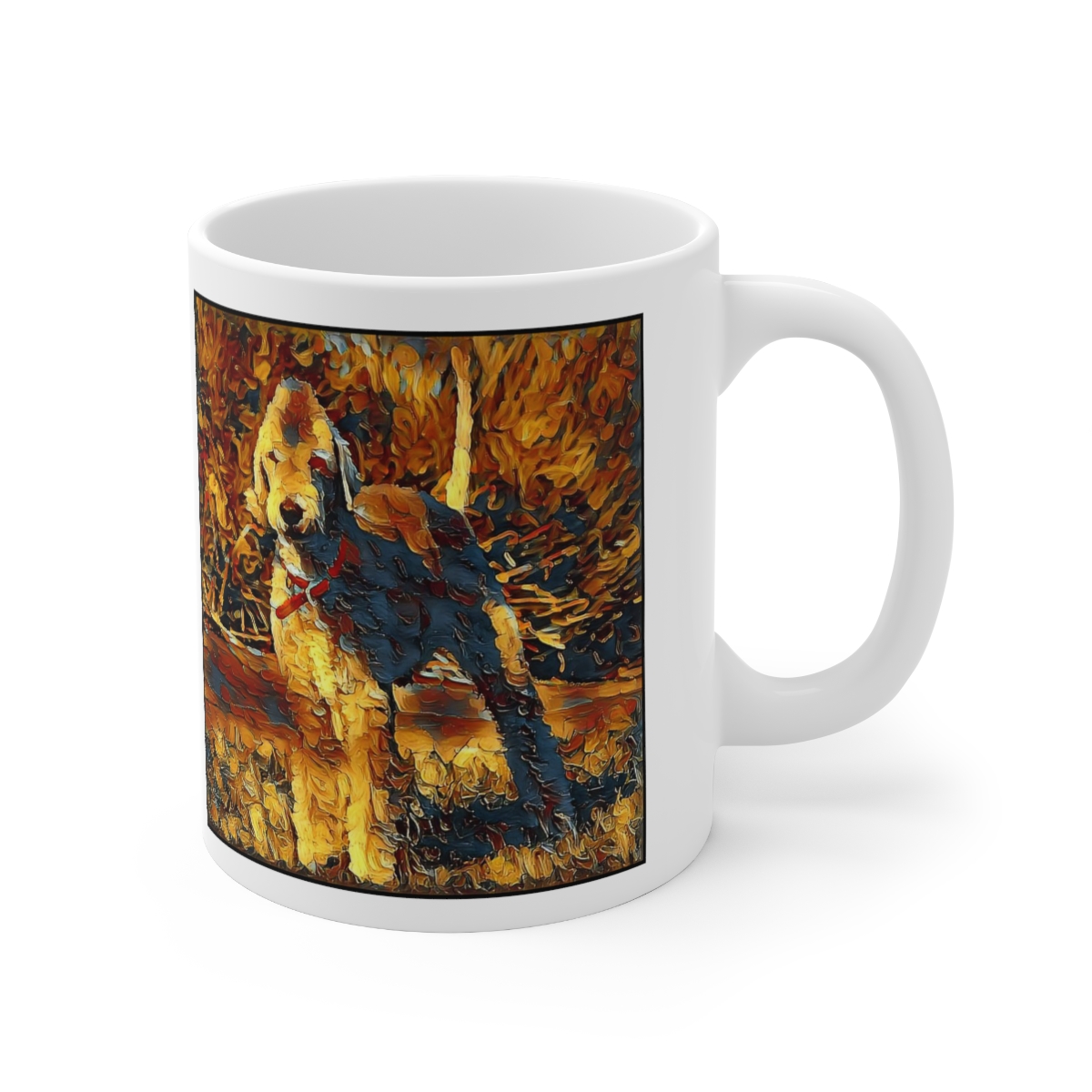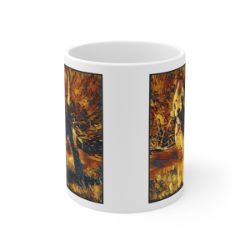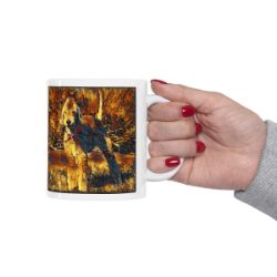 Keep cozy and warm with a nice cuppa, featuring the beloved Bedlington Terrier dog breed stylized in our Coloromo Painterly art on a ceramic mug. Lead and BPA-free, these durable mugs are also microwave & dishwasher-safe. Made of white, resilient ceramic in an 11-ounce size, this is the perfect gift for coffee, tea, and hot chocolate lovers.