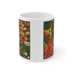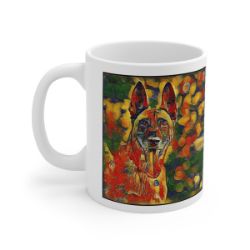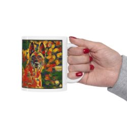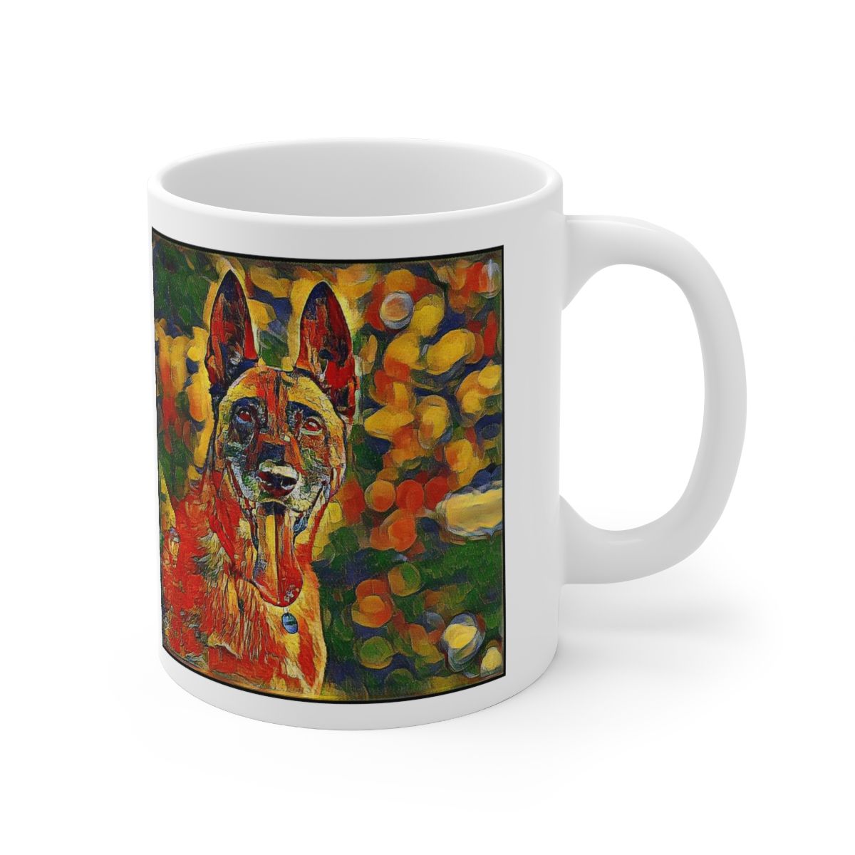 Keep cozy and warm with a nice cuppa, featuring the beloved Belgian Malinois dog breed stylized in our Coloromo Garden Veggie art on a ceramic mug. Lead and BPA-free, these durable mugs are also microwave & dishwasher-safe. Made of white, resilient ceramic in an 11-ounce size, this is the perfect gift for coffee, tea, and hot chocolate lovers.
