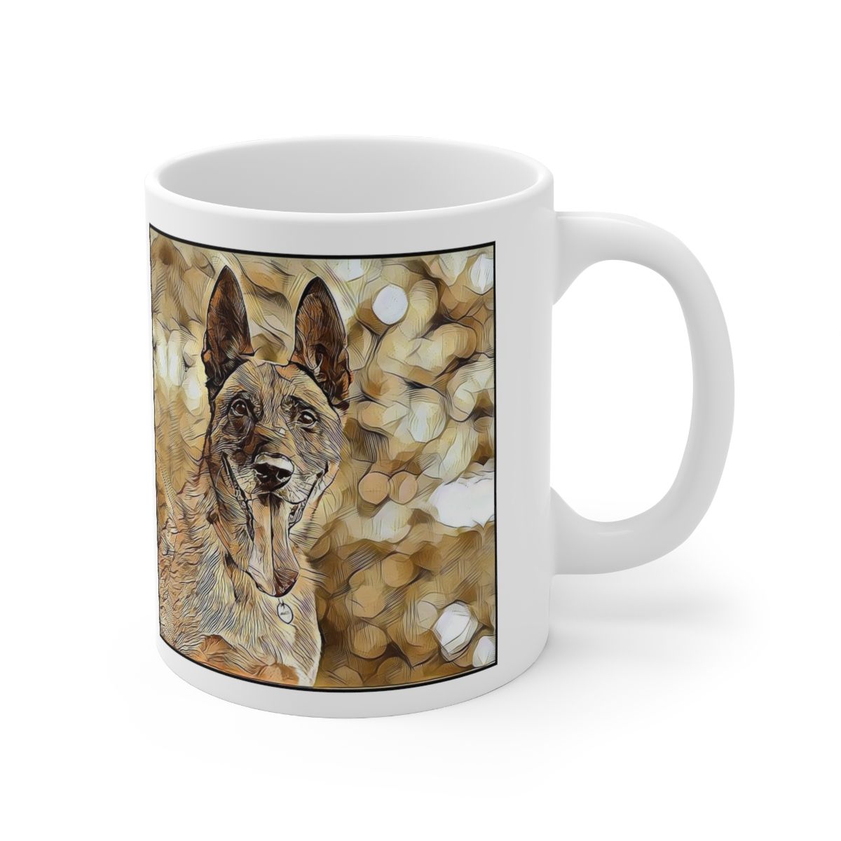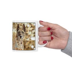 Keep cozy and warm with a nice cuppa, featuring the beloved Belgian Malinois dog breed stylized in our Coloromo Hairy Styles art on a ceramic mug. Lead and BPA-free, these durable mugs are also microwave & dishwasher-safe. Made of white, resilient ceramic in an 11-ounce size, this is the perfect gift for coffee, tea, and hot chocolate lovers.