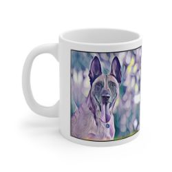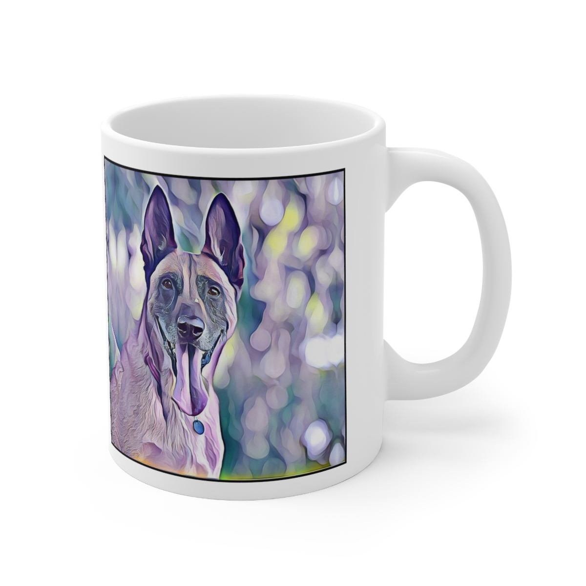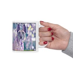 Keep cozy and warm with a nice cuppa, featuring the beloved Belgian Malinois dog breed stylized in our Coloromo Lavender Ice art on a ceramic mug. Lead and BPA-free, these durable mugs are also microwave & dishwasher-safe. Made of white, resilient ceramic in an 11-ounce size, this is the perfect gift for coffee, tea, and hot chocolate lovers.