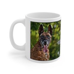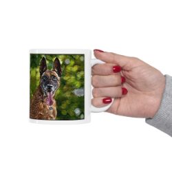 Keep cozy and warm with a nice cuppa, featuring the beloved Belgian Malinois dog breed stylized in our Coloromo Lord Lil Bit art on a ceramic mug. Lead and BPA-free, these durable mugs are also microwave & dishwasher-safe. Made of white, resilient ceramic in an 11-ounce size, this is the perfect gift for coffee, tea, and hot chocolate lovers.