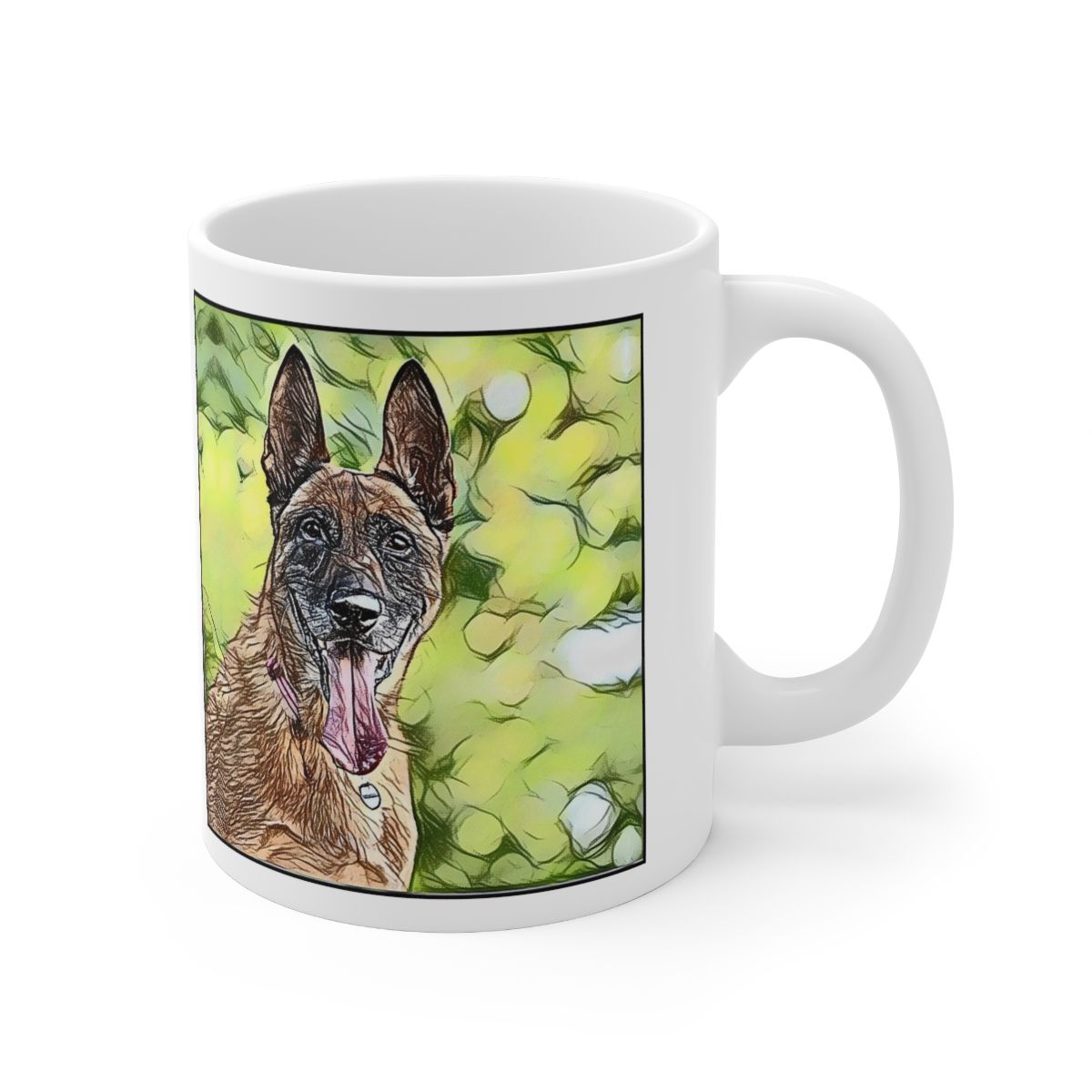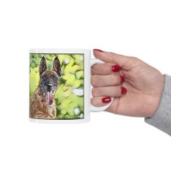 Keep cozy and warm with a nice cuppa, featuring the beloved Belgian Malinois dog breed stylized in our Coloromo Penciled In art on a ceramic mug. Lead and BPA-free, these durable mugs are also microwave & dishwasher-safe. Made of white, resilient ceramic in an 11-ounce size, this is the perfect gift for coffee, tea, and hot chocolate lovers.