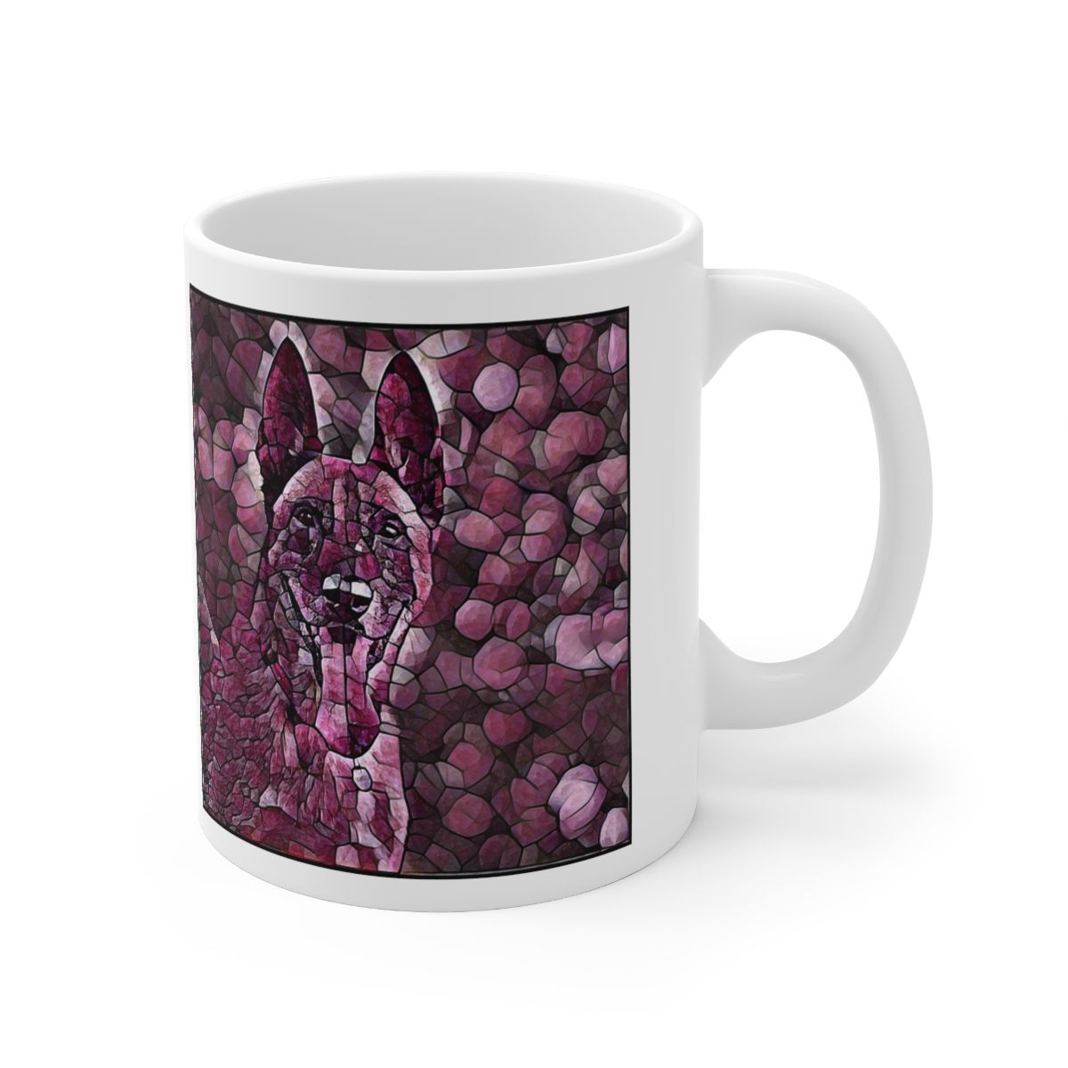 Keep cozy and warm with a nice cuppa, featuring the beloved Belgian Malinois dog breed stylized in our Coloromo Plump Wine art on a ceramic mug. Lead and BPA-free, these durable mugs are also microwave & dishwasher-safe. Made of white, resilient ceramic in an 11-ounce size, this is the perfect gift for coffee, tea, and hot chocolate lovers.
