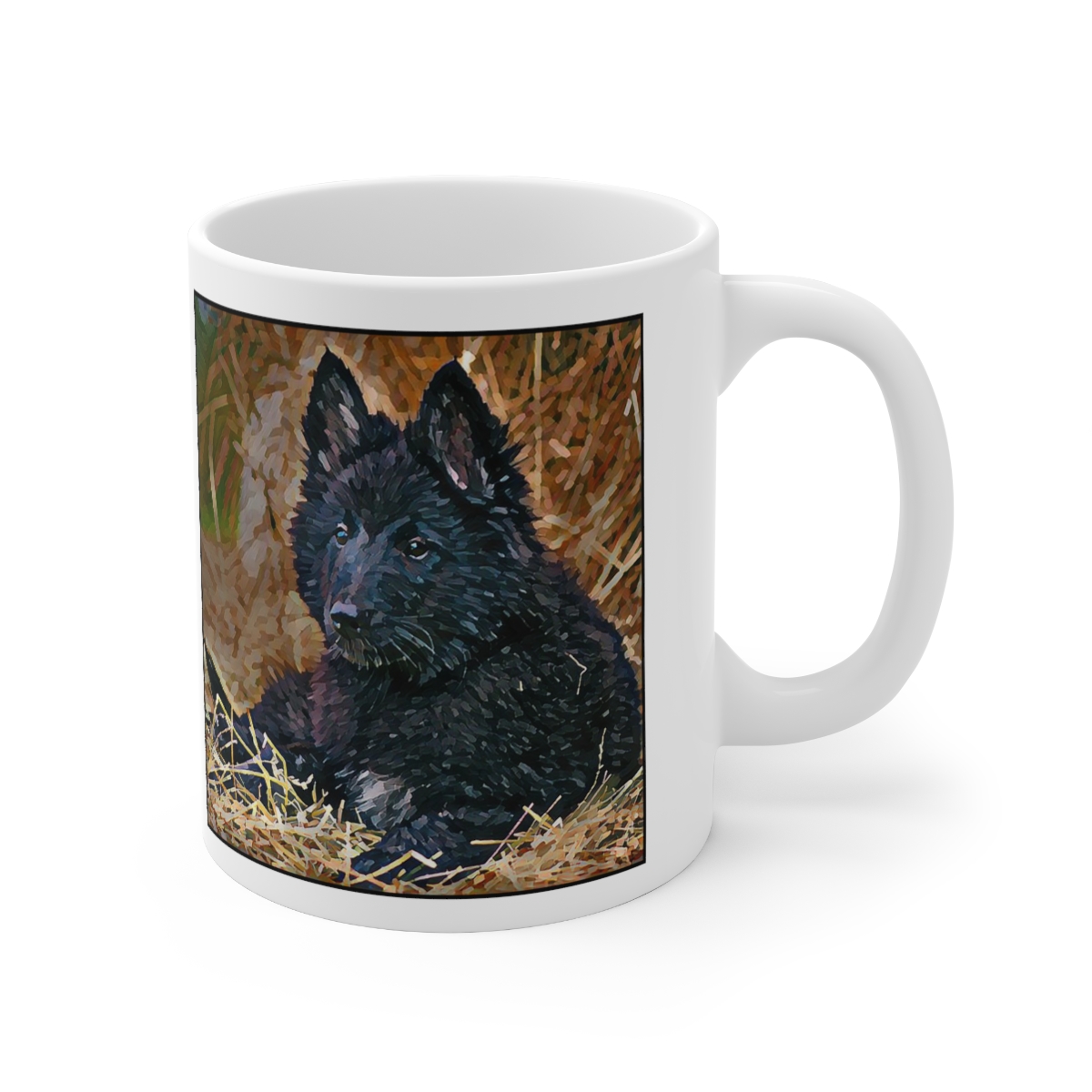 Keep cozy and warm with a nice cuppa, featuring the beloved Belgian Sheepdog Belgian Shepherd dog breed stylized in our Coloromo Lord Lil Bit art on a ceramic mug. Lead and BPA-free, these durable mugs are also microwave & dishwasher-safe. Made of white, resilient ceramic in an 11-ounce size, this is the perfect gift for coffee, tea, and hot chocolate lovers.
