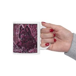 Keep cozy and warm with a nice cuppa, featuring the beloved Belgian Sheepdog Belgian Shepherd dog breed stylized in our Coloromo Plump Wine art on a ceramic mug. Lead and BPA-free, these durable mugs are also microwave & dishwasher-safe. Made of white, resilient ceramic in an 11-ounce size, this is the perfect gift for coffee, tea, and hot chocolate lovers.