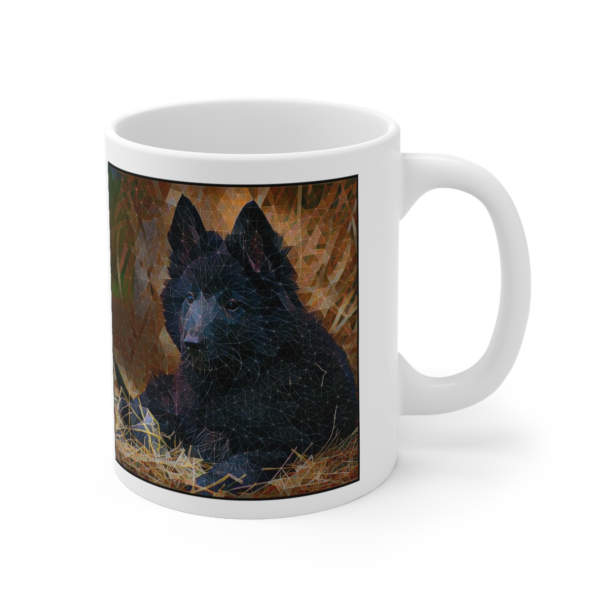 Keep cozy and warm with a nice cuppa, featuring the beloved Belgian Sheepdog Belgian Shepherd dog breed stylized in our Coloromo Rock Candy art on a ceramic mug. Lead and BPA-free, these durable mugs are also microwave & dishwasher-safe. Made of white, resilient ceramic in an 11-ounce size, this is the perfect gift for coffee, tea, and hot chocolate lovers.