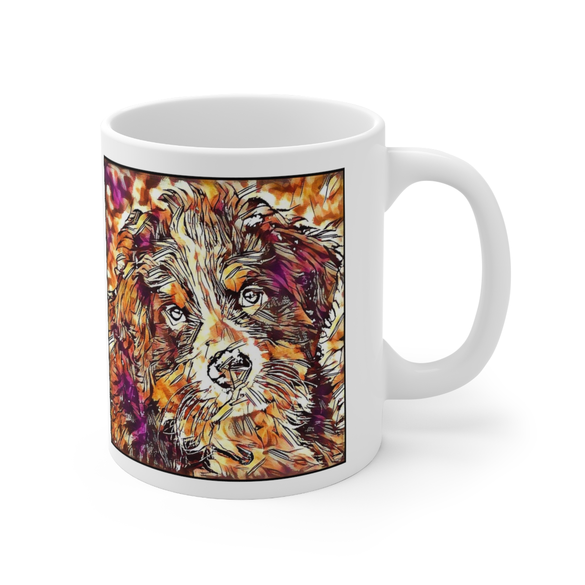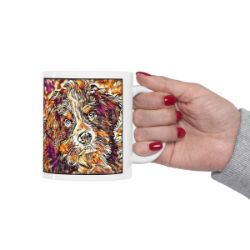 Keep cozy and warm with a nice cuppa, featuring the beloved Bernese Mountain Dog dog breed stylized in our Coloromo Hipster art on a ceramic mug. Lead and BPA-free, these durable mugs are also microwave & dishwasher-safe. Made of white, resilient ceramic in an 11-ounce size, this is the perfect gift for coffee, tea, and hot chocolate lovers.