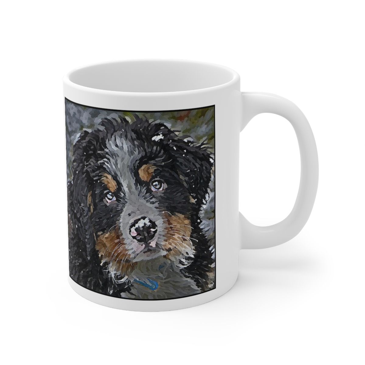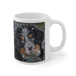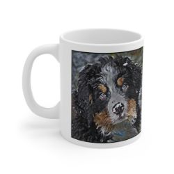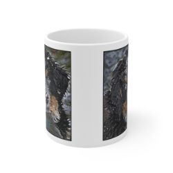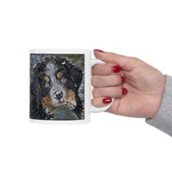 Keep cozy and warm with a nice cuppa, featuring the beloved Bernese Mountain Dog dog breed stylized in our Coloromo Lord Lil Bit art on a ceramic mug. Lead and BPA-free, these durable mugs are also microwave & dishwasher-safe. Made of white, resilient ceramic in an 11-ounce size, this is the perfect gift for coffee, tea, and hot chocolate lovers.
