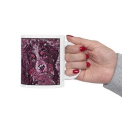 Keep cozy and warm with a nice cuppa, featuring the beloved Bernese Mountain Dog dog breed stylized in our Coloromo Plump Wine art on a ceramic mug. Lead and BPA-free, these durable mugs are also microwave & dishwasher-safe. Made of white, resilient ceramic in an 11-ounce size, this is the perfect gift for coffee, tea, and hot chocolate lovers.