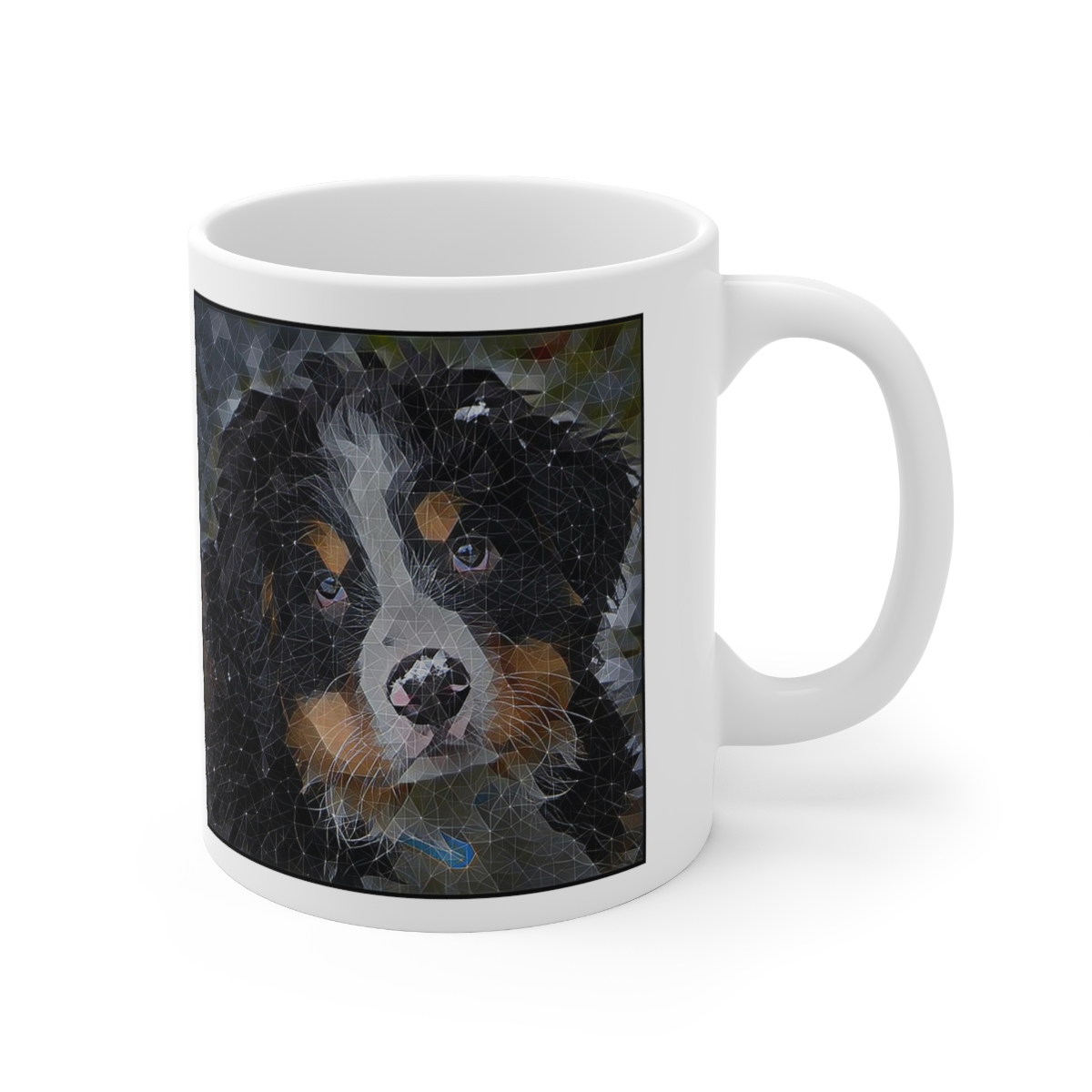 Keep cozy and warm with a nice cuppa, featuring the beloved Bernese Mountain Dog dog breed stylized in our Coloromo Rock Candy art on a ceramic mug. Lead and BPA-free, these durable mugs are also microwave & dishwasher-safe. Made of white, resilient ceramic in an 11-ounce size, this is the perfect gift for coffee, tea, and hot chocolate lovers.