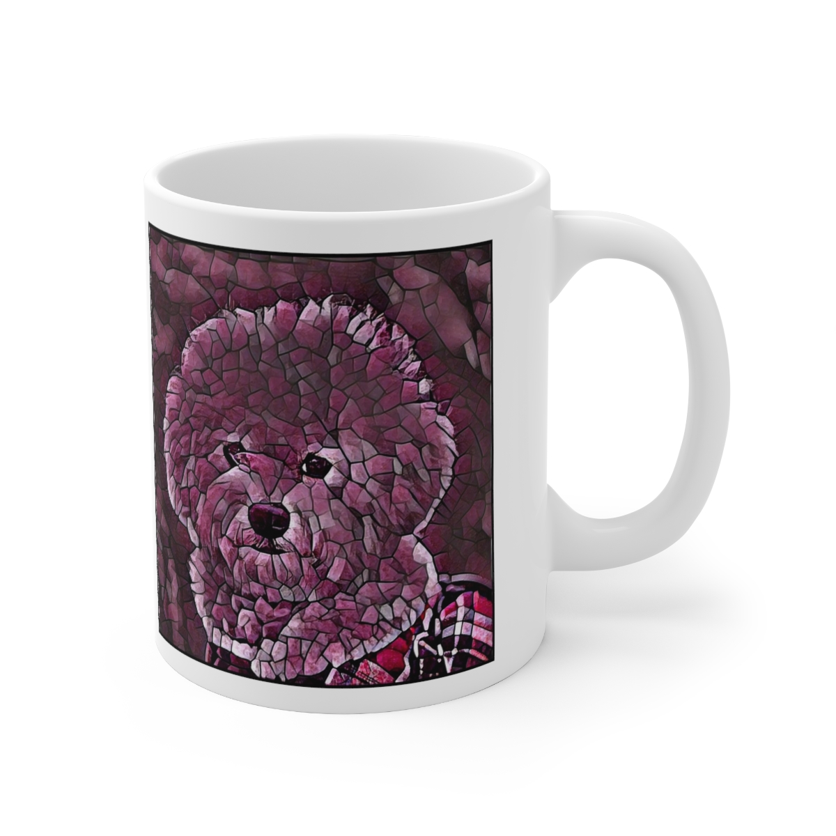 Keep cozy and warm with a nice cuppa, featuring the beloved Bichon Frise dog breed stylized in our Coloromo Plump Wine art on a ceramic mug. Lead and BPA-free, these durable mugs are also microwave & dishwasher-safe. Made of white, resilient ceramic in an 11-ounce size, this is the perfect gift for coffee, tea, and hot chocolate lovers.