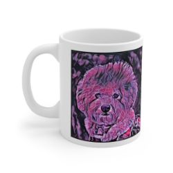 Keep cozy and warm with a nice cuppa, featuring the beloved Bichon Frise dog breed stylized in our Coloromo Violet Femmes art on a ceramic mug. Lead and BPA-free, these durable mugs are also microwave & dishwasher-safe. Made of white, resilient ceramic in an 11-ounce size, this is the perfect gift for coffee, tea, and hot chocolate lovers.