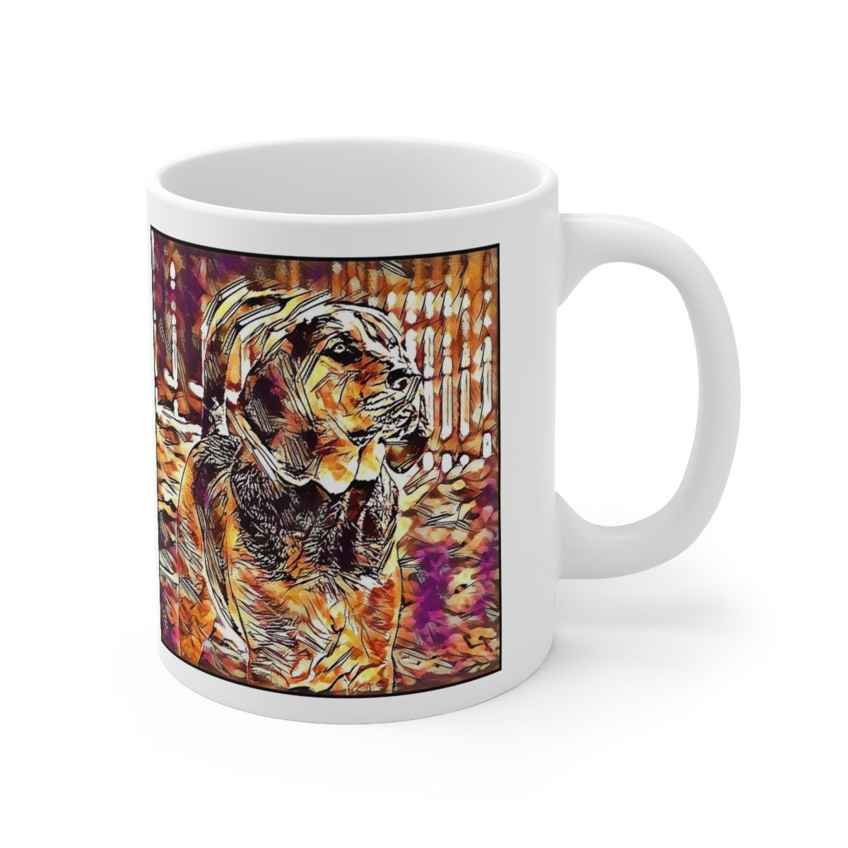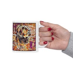 Keep cozy and warm with a nice cuppa, featuring the beloved Bloodhound dog breed stylized in our Coloromo Hipster art on a ceramic mug. Lead and BPA-free, these durable mugs are also microwave & dishwasher-safe. Made of white, resilient ceramic in an 11-ounce size, this is the perfect gift for coffee, tea, and hot chocolate lovers.