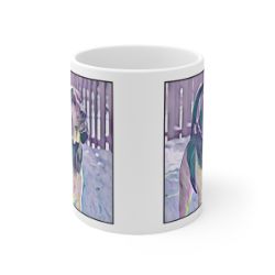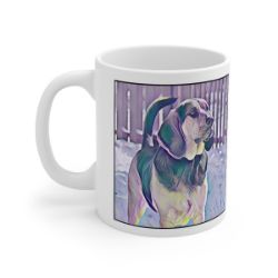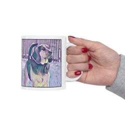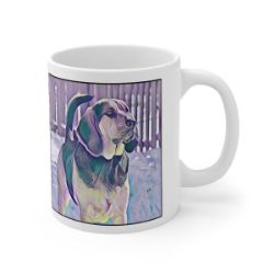 Keep cozy and warm with a nice cuppa, featuring the beloved Bloodhound dog breed stylized in our Coloromo Lavender Ice art on a ceramic mug. Lead and BPA-free, these durable mugs are also microwave & dishwasher-safe. Made of white, resilient ceramic in an 11-ounce size, this is the perfect gift for coffee, tea, and hot chocolate lovers.