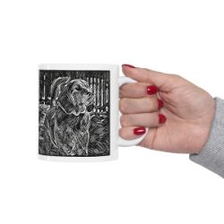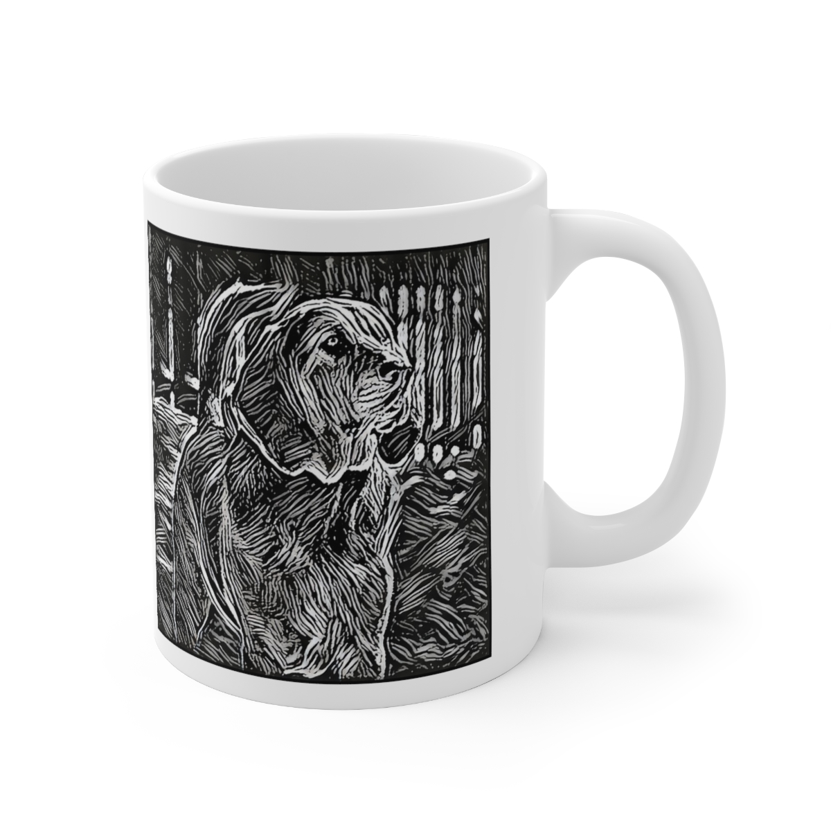 Keep cozy and warm with a nice cuppa, featuring the beloved Bloodhound dog breed stylized in our Coloromo Licorice Lines art on a ceramic mug. Lead and BPA-free, these durable mugs are also microwave & dishwasher-safe. Made of white, resilient ceramic in an 11-ounce size, this is the perfect gift for coffee, tea, and hot chocolate lovers.