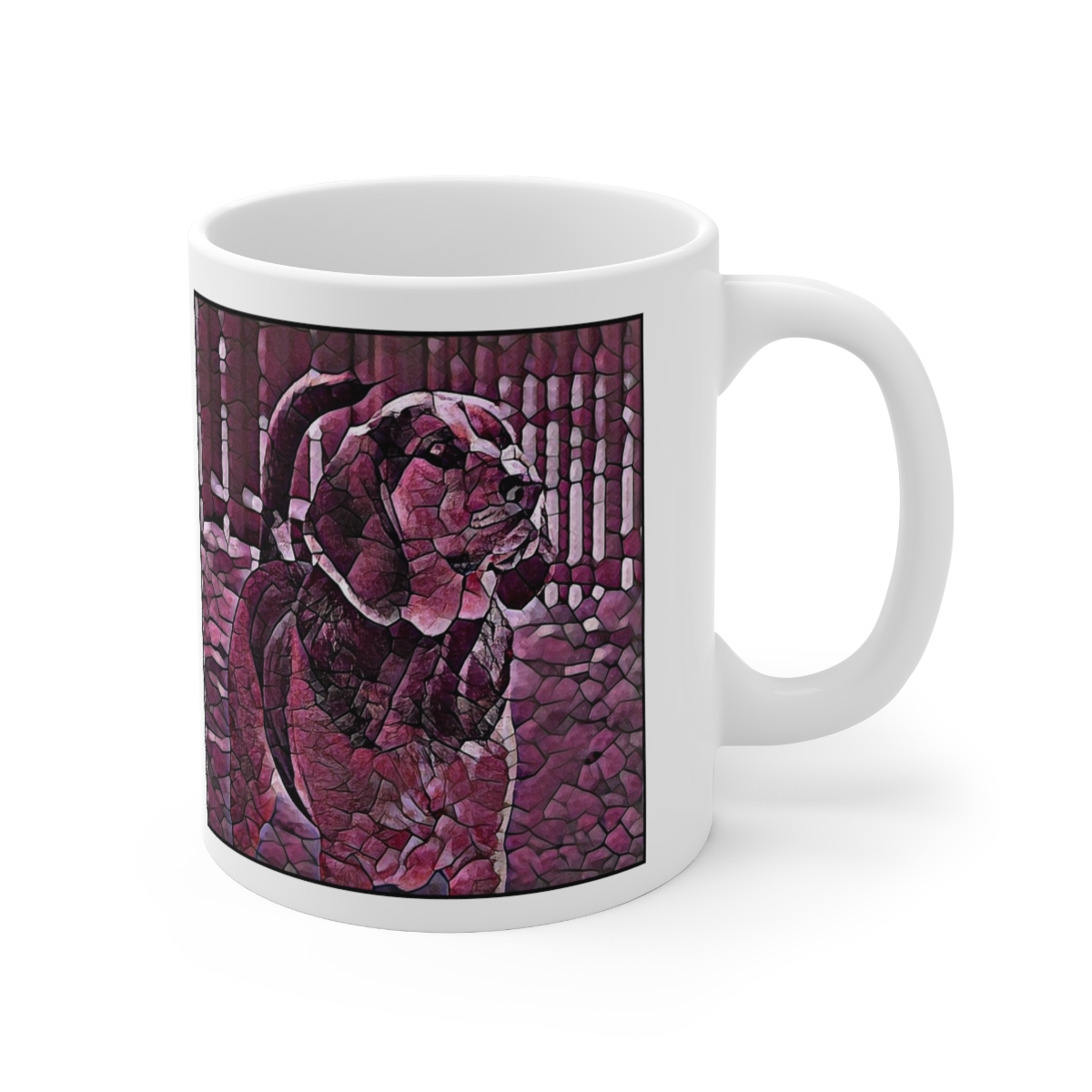 Keep cozy and warm with a nice cuppa, featuring the beloved Bloodhound dog breed stylized in our Coloromo Plump Wine art on a ceramic mug. Lead and BPA-free, these durable mugs are also microwave & dishwasher-safe. Made of white, resilient ceramic in an 11-ounce size, this is the perfect gift for coffee, tea, and hot chocolate lovers.