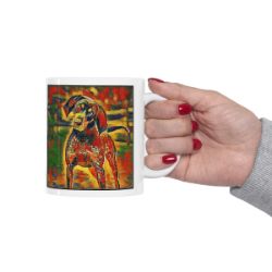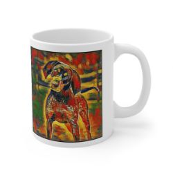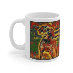 Keep cozy and warm with a nice cuppa, featuring the beloved Bluetick Coonhound dog breed stylized in our Coloromo Garden Veggie art on a ceramic mug. Lead and BPA-free, these durable mugs are also microwave & dishwasher-safe. Made of white, resilient ceramic in an 11-ounce size, this is the perfect gift for coffee, tea, and hot chocolate lovers.
