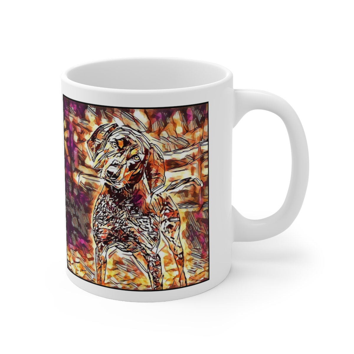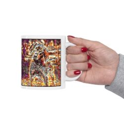 Keep cozy and warm with a nice cuppa, featuring the beloved Bluetick Coonhound dog breed stylized in our Coloromo Hipster art on a ceramic mug. Lead and BPA-free, these durable mugs are also microwave & dishwasher-safe. Made of white, resilient ceramic in an 11-ounce size, this is the perfect gift for coffee, tea, and hot chocolate lovers.