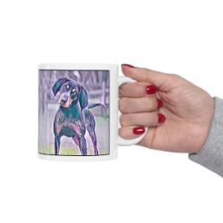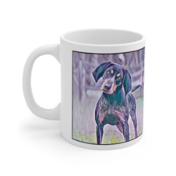 Keep cozy and warm with a nice cuppa, featuring the beloved Bluetick Coonhound dog breed stylized in our Coloromo Lavender Ice art on a ceramic mug. Lead and BPA-free, these durable mugs are also microwave & dishwasher-safe. Made of white, resilient ceramic in an 11-ounce size, this is the perfect gift for coffee, tea, and hot chocolate lovers.