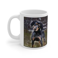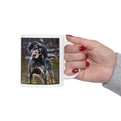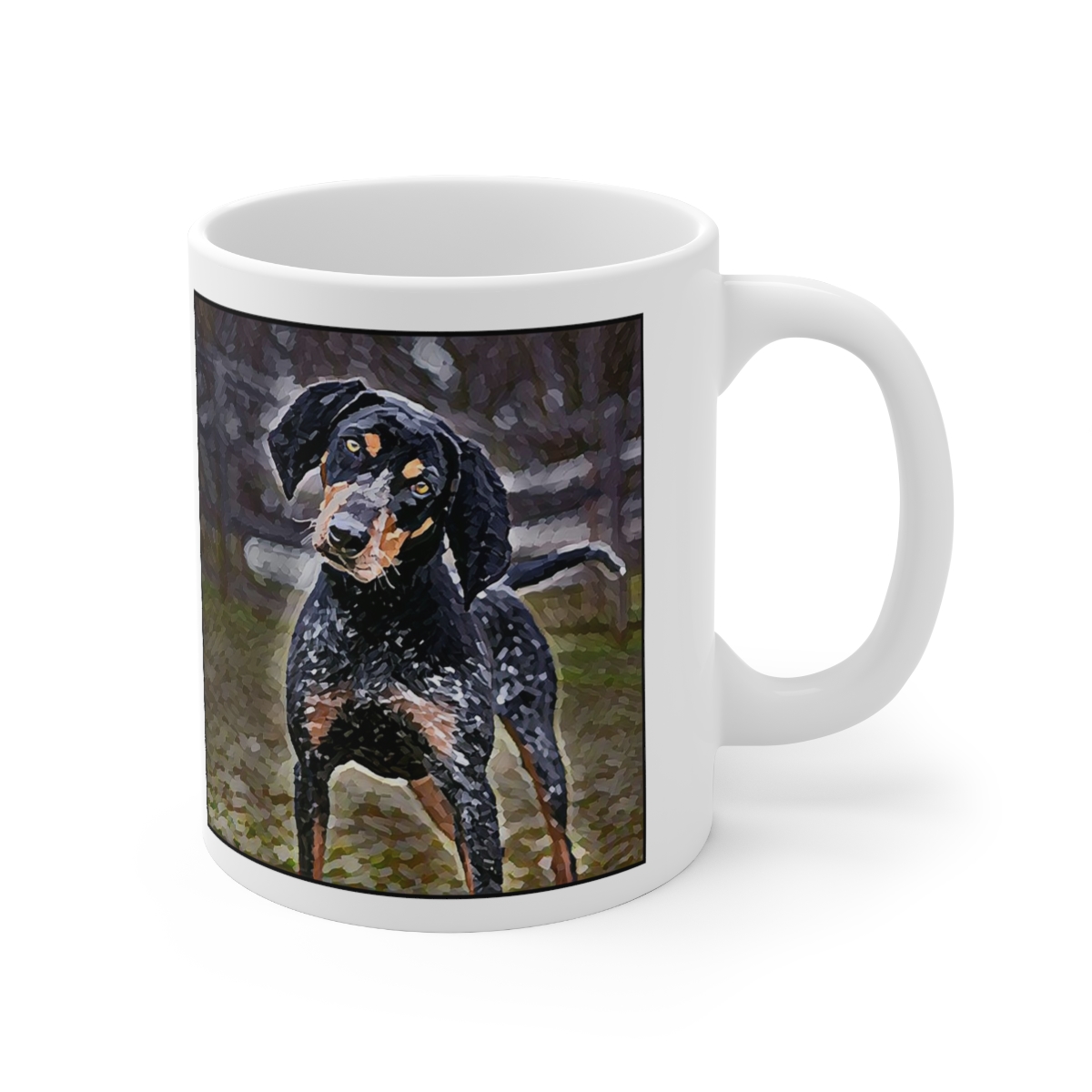 Keep cozy and warm with a nice cuppa, featuring the beloved Bluetick Coonhound dog breed stylized in our Coloromo Lord Lil Bit art on a ceramic mug. Lead and BPA-free, these durable mugs are also microwave & dishwasher-safe. Made of white, resilient ceramic in an 11-ounce size, this is the perfect gift for coffee, tea, and hot chocolate lovers.