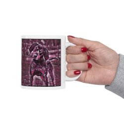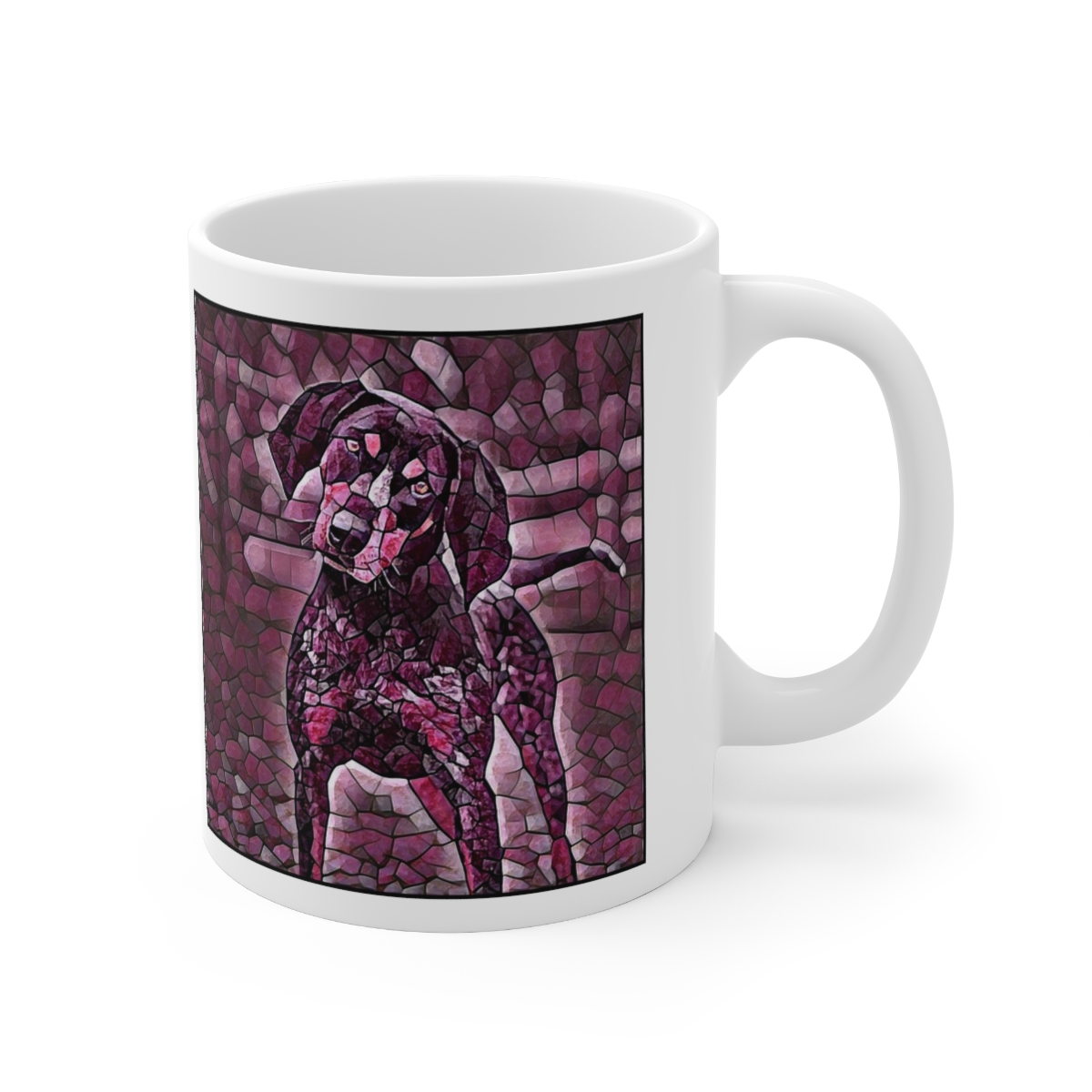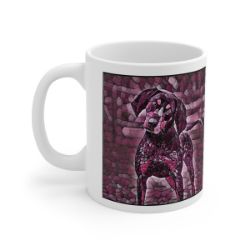 Keep cozy and warm with a nice cuppa, featuring the beloved Bluetick Coonhound dog breed stylized in our Coloromo Plump Wine art on a ceramic mug. Lead and BPA-free, these durable mugs are also microwave & dishwasher-safe. Made of white, resilient ceramic in an 11-ounce size, this is the perfect gift for coffee, tea, and hot chocolate lovers.