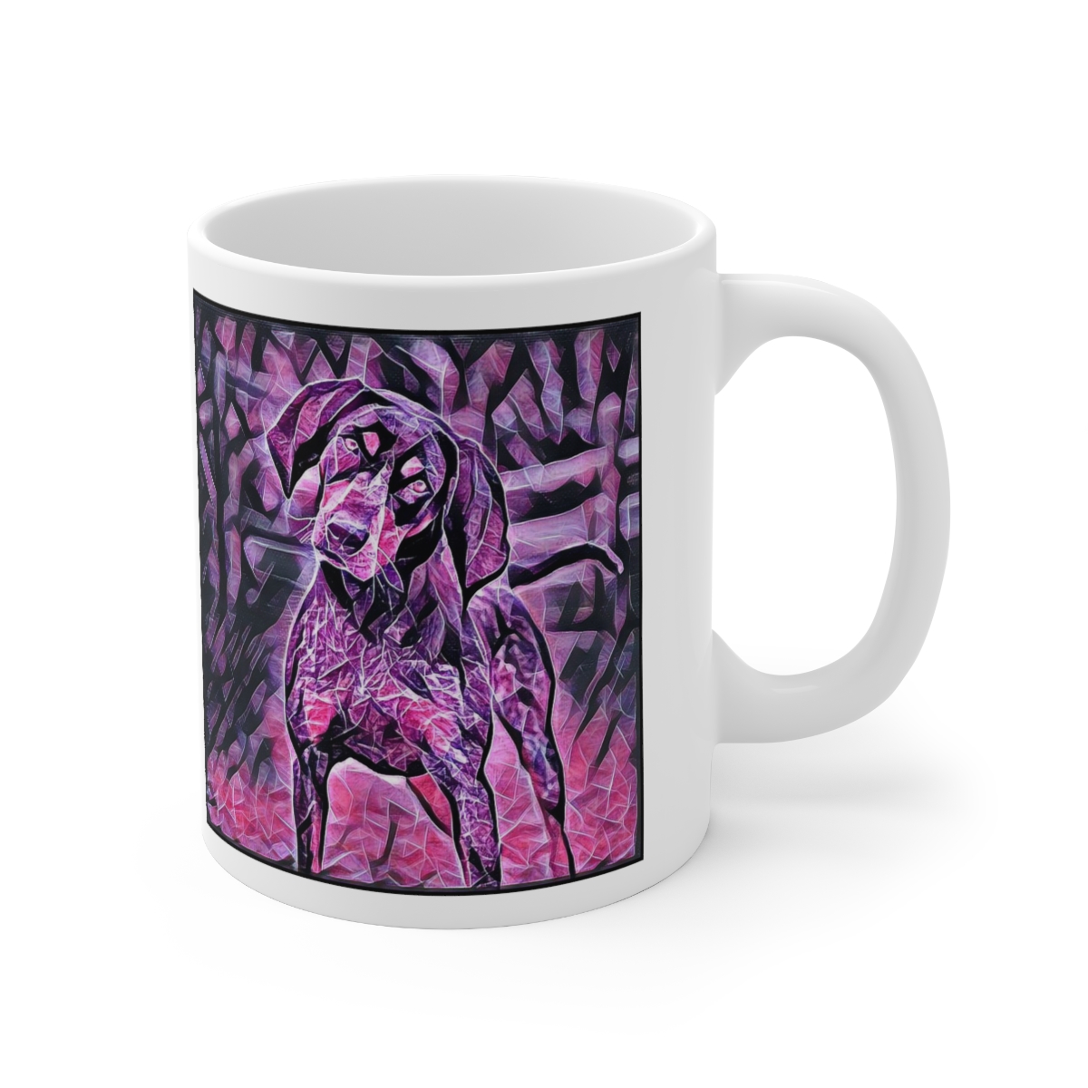 Keep cozy and warm with a nice cuppa, featuring the beloved Bluetick Coonhound dog breed stylized in our Coloromo Violet Femmes art on a ceramic mug. Lead and BPA-free, these durable mugs are also microwave & dishwasher-safe. Made of white, resilient ceramic in an 11-ounce size, this is the perfect gift for coffee, tea, and hot chocolate lovers.