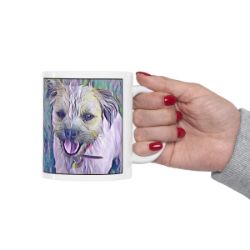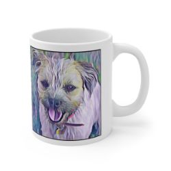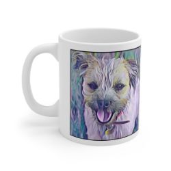Keep cozy and warm with a nice cuppa, featuring the beloved Border Terrier dog breed stylized in our Coloromo Lavender Ice art on a ceramic mug. Lead and BPA-free, these durable mugs are also microwave & dishwasher-safe. Made of white, resilient ceramic in an 11-ounce size, this is the perfect gift for coffee, tea, and hot chocolate lovers.