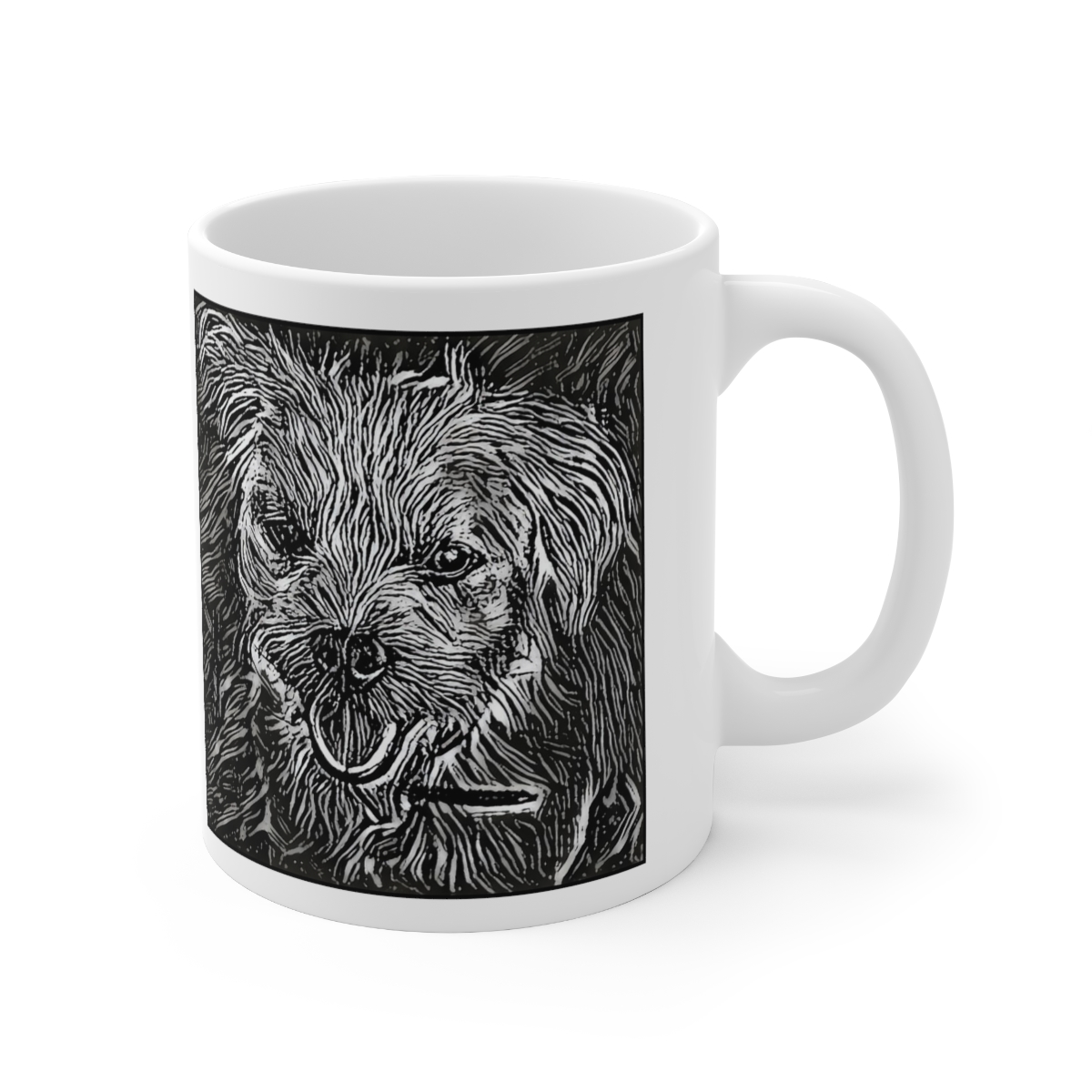 Keep cozy and warm with a nice cuppa, featuring the beloved Border Terrier dog breed stylized in our Coloromo Licorice Lines art on a ceramic mug. Lead and BPA-free, these durable mugs are also microwave & dishwasher-safe. Made of white, resilient ceramic in an 11-ounce size, this is the perfect gift for coffee, tea, and hot chocolate lovers.