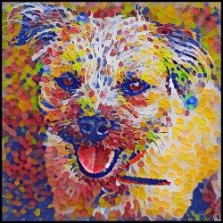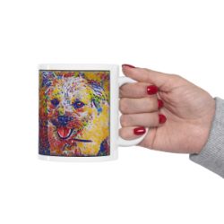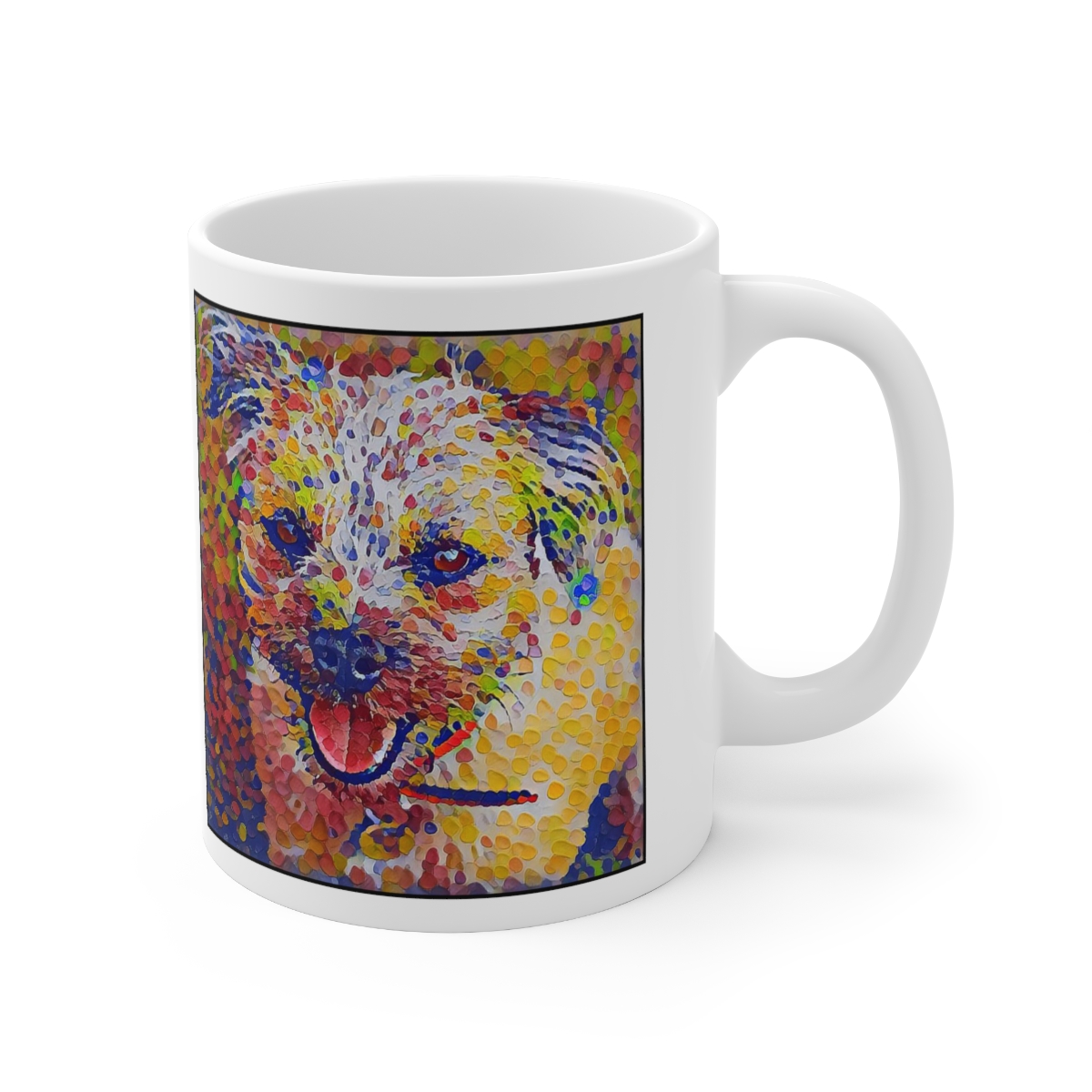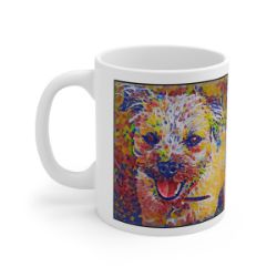 Keep cozy and warm with a nice cuppa, featuring the beloved Border Terrier dog breed stylized in our Coloromo Party Confetti art on a ceramic mug. Lead and BPA-free, these durable mugs are also microwave & dishwasher-safe. Made of white, resilient ceramic in an 11-ounce size, this is the perfect gift for coffee, tea, and hot chocolate lovers.