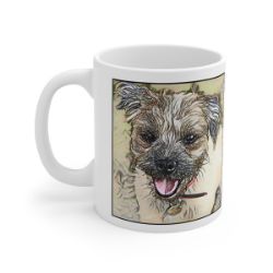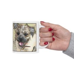 Keep cozy and warm with a nice cuppa, featuring the beloved Border Terrier dog breed stylized in our Coloromo Penciled In art on a ceramic mug. Lead and BPA-free, these durable mugs are also microwave & dishwasher-safe. Made of white, resilient ceramic in an 11-ounce size, this is the perfect gift for coffee, tea, and hot chocolate lovers.