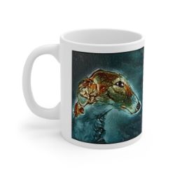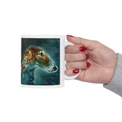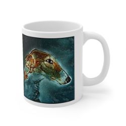 Keep cozy and warm with a nice cuppa, featuring the beloved Borzoi dog breed stylized in our Coloromo Lord Lil Bit art on a ceramic mug. Lead and BPA-free, these durable mugs are also microwave & dishwasher-safe. Made of white, resilient ceramic in an 11-ounce size, this is the perfect gift for coffee, tea, and hot chocolate lovers.