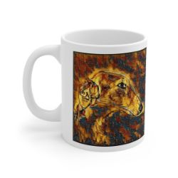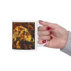 Keep cozy and warm with a nice cuppa, featuring the beloved Borzoi dog breed stylized in our Coloromo Painterly art on a ceramic mug. Lead and BPA-free, these durable mugs are also microwave & dishwasher-safe. Made of white, resilient ceramic in an 11-ounce size, this is the perfect gift for coffee, tea, and hot chocolate lovers.
