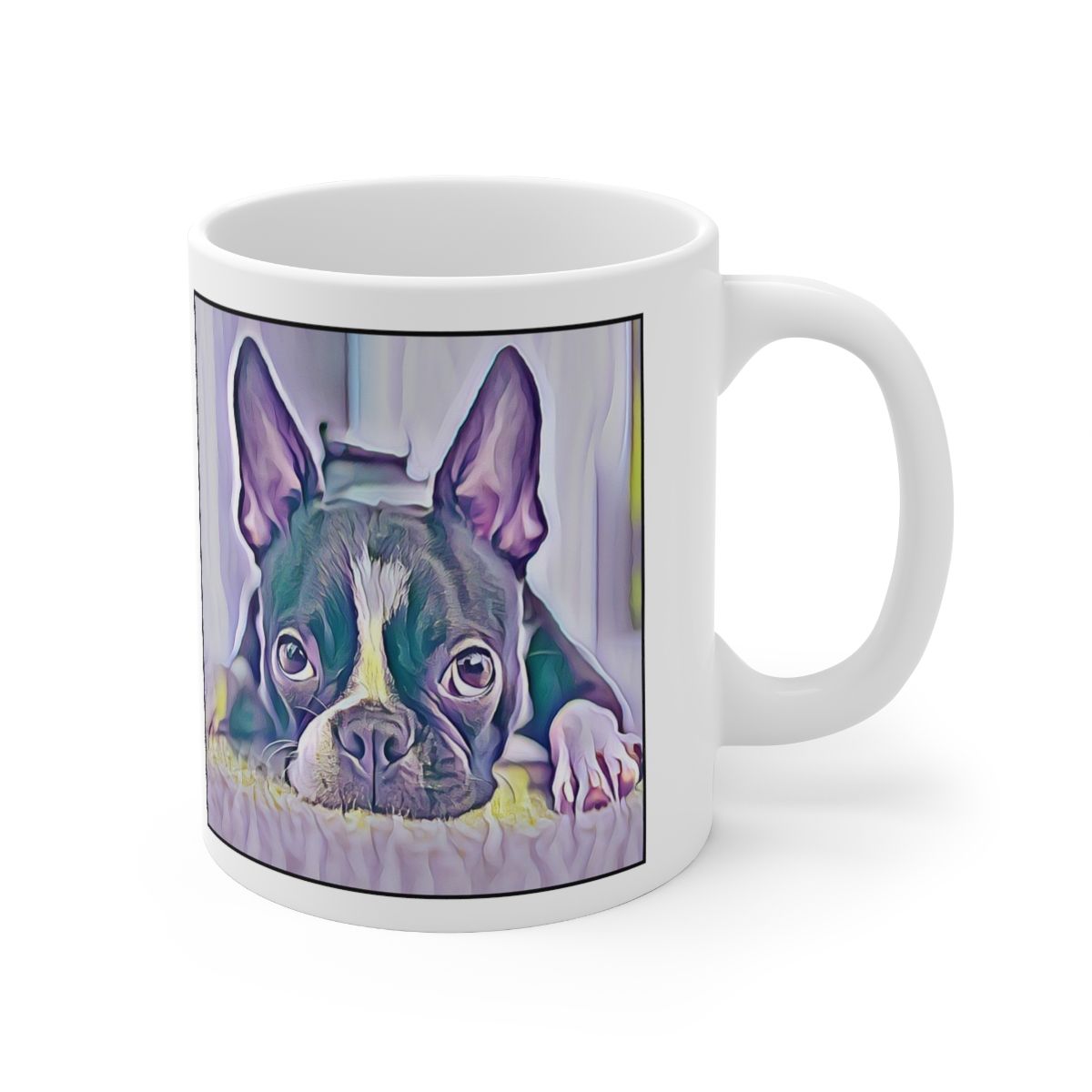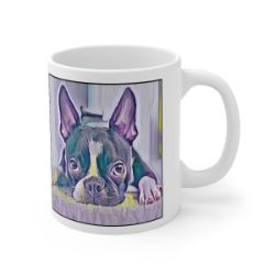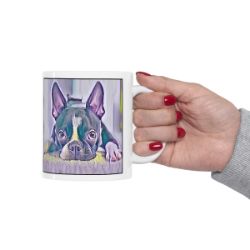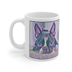 Keep cozy and warm with a nice cuppa, featuring the beloved Boston Terrier dog breed stylized in our Coloromo Lavender Ice art on a ceramic mug. Lead and BPA-free, these durable mugs are also microwave & dishwasher-safe. Made of white, resilient ceramic in an 11-ounce size, this is the perfect gift for coffee, tea, and hot chocolate lovers.