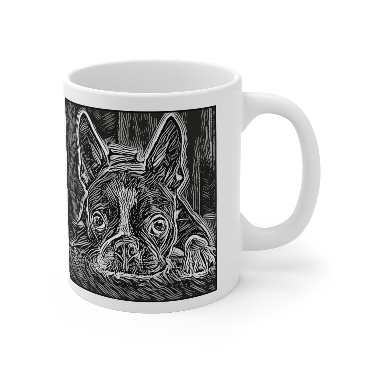 Keep cozy and warm with a nice cuppa, featuring the beloved Boston Terrier dog breed stylized in our Coloromo Licorice Lines art on a ceramic mug. Lead and BPA-free, these durable mugs are also microwave & dishwasher-safe. Made of white, resilient ceramic in an 11-ounce size, this is the perfect gift for coffee, tea, and hot chocolate lovers.