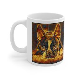 Keep cozy and warm with a nice cuppa, featuring the beloved Boston Terrier dog breed stylized in our Coloromo Painterly art on a ceramic mug. Lead and BPA-free, these durable mugs are also microwave & dishwasher-safe. Made of white, resilient ceramic in an 11-ounce size, this is the perfect gift for coffee, tea, and hot chocolate lovers.