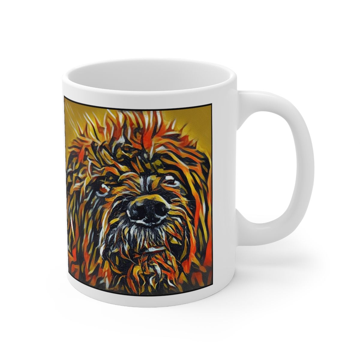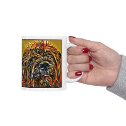 Keep cozy and warm with a nice cuppa, featuring the beloved Bouvier de Flandres dog breed stylized in our Coloromo Graffiti Haus art on a ceramic mug. Lead and BPA-free, these durable mugs are also microwave & dishwasher-safe. Made of white, resilient ceramic in an 11-ounce size, this is the perfect gift for coffee, tea, and hot chocolate lovers.