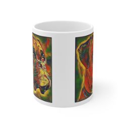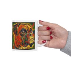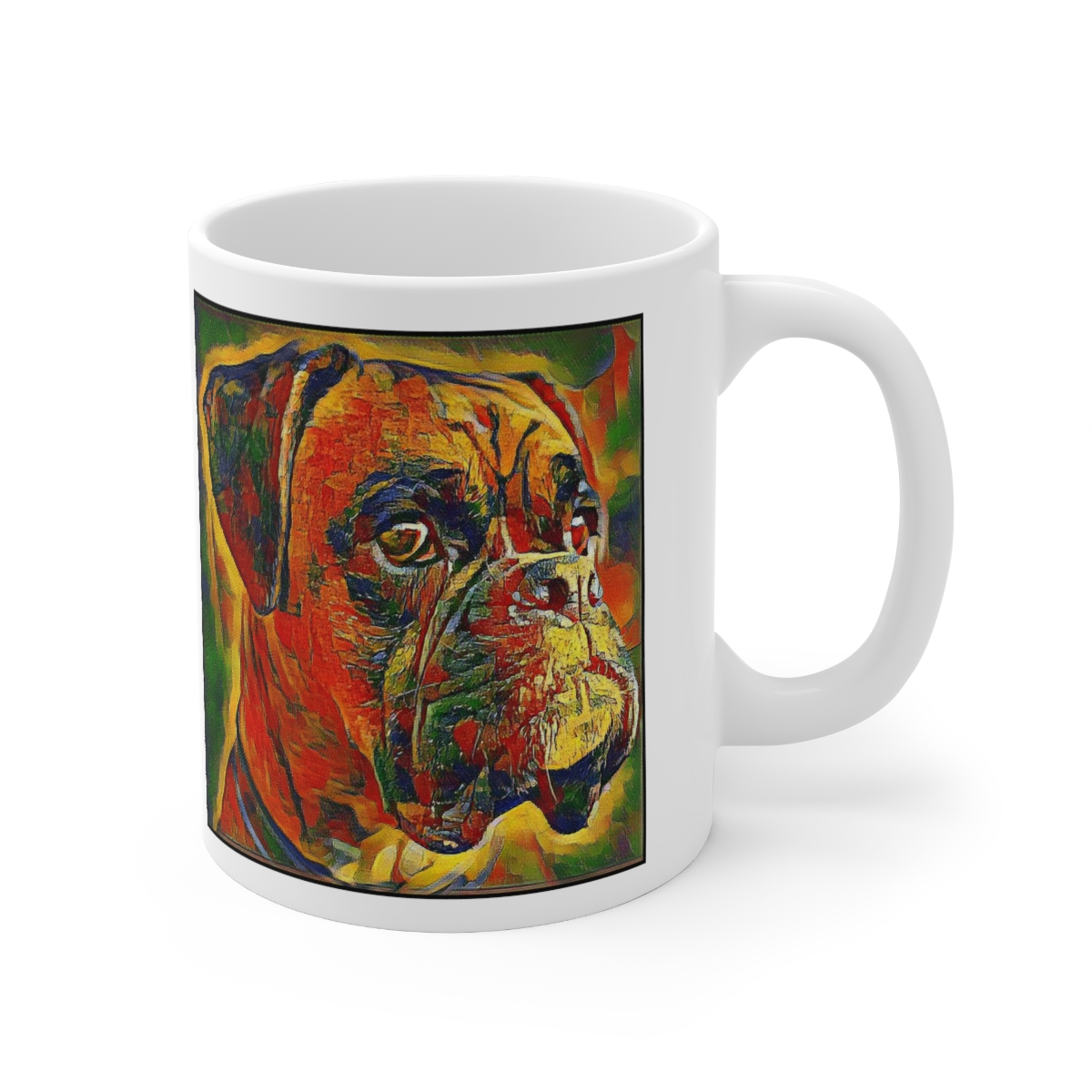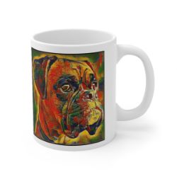 Keep cozy and warm with a nice cuppa, featuring the beloved Boxer dog breed stylized in our Coloromo Garden Veggie art on a ceramic mug. Lead and BPA-free, these durable mugs are also microwave & dishwasher-safe. Made of white, resilient ceramic in an 11-ounce size, this is the perfect gift for coffee, tea, and hot chocolate lovers.