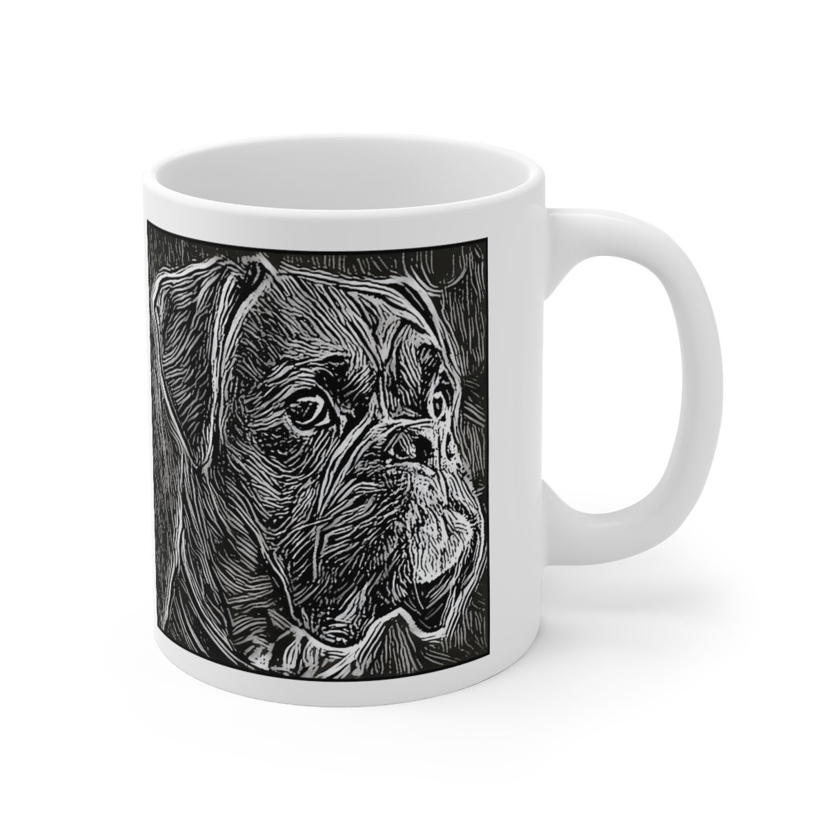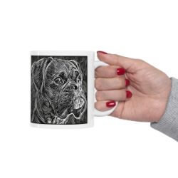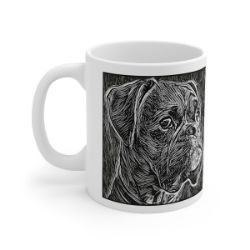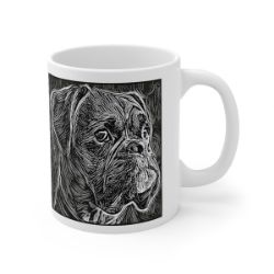 Keep cozy and warm with a nice cuppa, featuring the beloved Boxer dog breed stylized in our Coloromo Licorice Lines art on a ceramic mug. Lead and BPA-free, these durable mugs are also microwave & dishwasher-safe. Made of white, resilient ceramic in an 11-ounce size, this is the perfect gift for coffee, tea, and hot chocolate lovers.