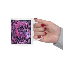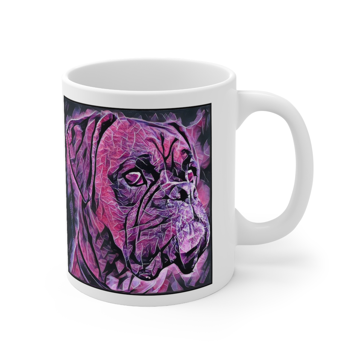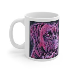 Keep cozy and warm with a nice cuppa, featuring the beloved Boxer dog breed stylized in our Coloromo Violet Femmes art on a ceramic mug. Lead and BPA-free, these durable mugs are also microwave & dishwasher-safe. Made of white, resilient ceramic in an 11-ounce size, this is the perfect gift for coffee, tea, and hot chocolate lovers.