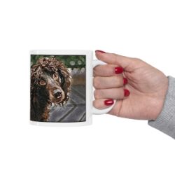 Keep cozy and warm with a nice cuppa, featuring the beloved Boykin Spaniel dog breed stylized in our Coloromo Lord Lil Bit art on a ceramic mug. Lead and BPA-free, these durable mugs are also microwave & dishwasher-safe. Made of white, resilient ceramic in an 11-ounce size, this is the perfect gift for coffee, tea, and hot chocolate lovers.