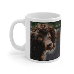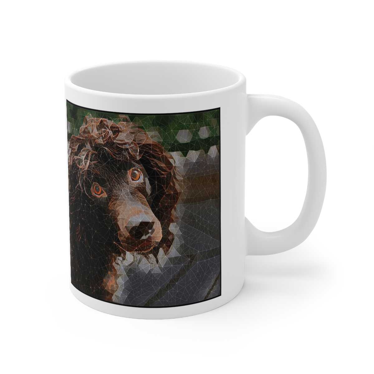 Keep cozy and warm with a nice cuppa, featuring the beloved Boykin Spaniel dog breed stylized in our Coloromo Rock Candy art on a ceramic mug. Lead and BPA-free, these durable mugs are also microwave & dishwasher-safe. Made of white, resilient ceramic in an 11-ounce size, this is the perfect gift for coffee, tea, and hot chocolate lovers.