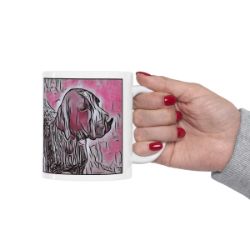 Keep cozy and warm with a nice cuppa, featuring the beloved Braque francais Pyrenean dog breed stylized in our Coloromo Comic Pink art on a ceramic mug. Lead and BPA-free, these durable mugs are also microwave & dishwasher-safe. Made of white, resilient ceramic in an 11-ounce size, this is the perfect gift for coffee, tea, and hot chocolate lovers.