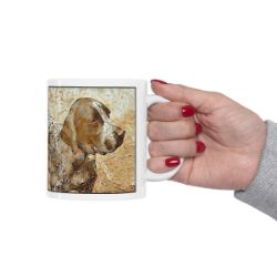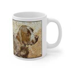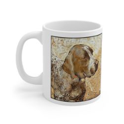 Keep cozy and warm with a nice cuppa, featuring the beloved Braque francais Pyrenean dog breed stylized in our Coloromo Hairy Styles art on a ceramic mug. Lead and BPA-free, these durable mugs are also microwave & dishwasher-safe. Made of white, resilient ceramic in an 11-ounce size, this is the perfect gift for coffee, tea, and hot chocolate lovers.