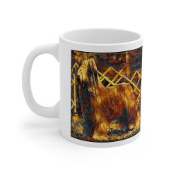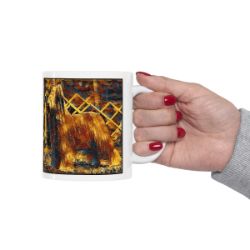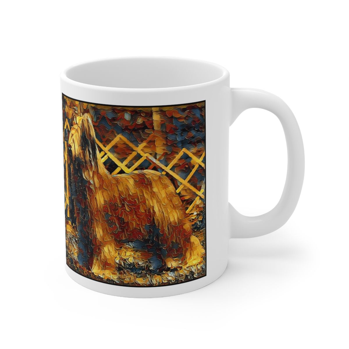 Keep cozy and warm with a nice cuppa, featuring the beloved Briard dog breed stylized in our Coloromo Painterly art on a ceramic mug. Lead and BPA-free, these durable mugs are also microwave & dishwasher-safe. Made of white, resilient ceramic in an 11-ounce size, this is the perfect gift for coffee, tea, and hot chocolate lovers.