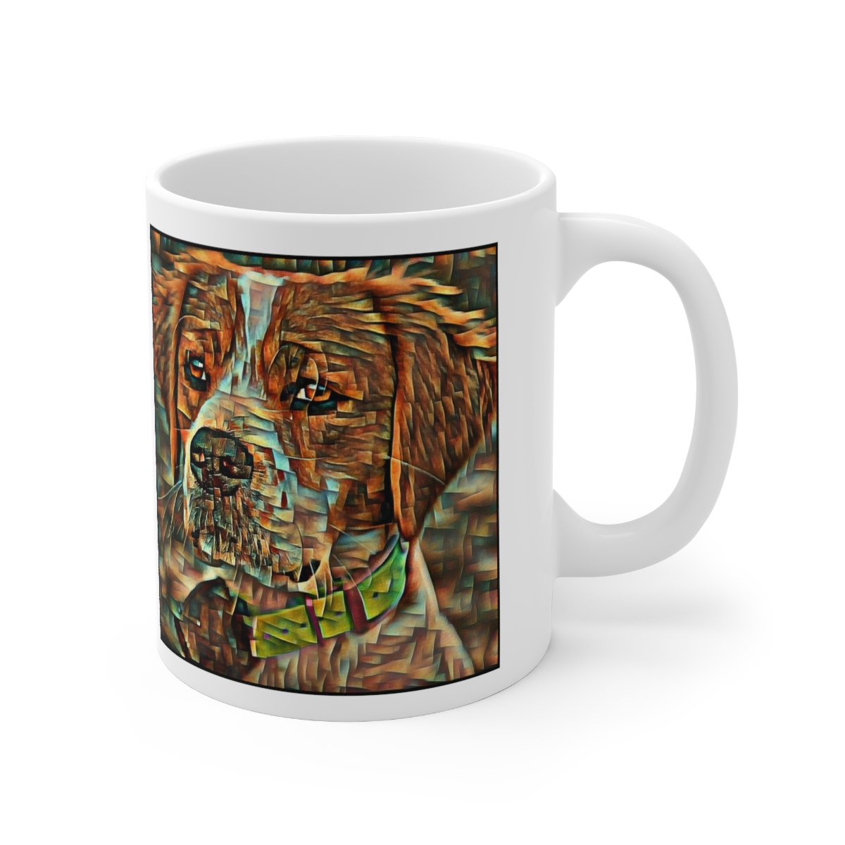 Keep cozy and warm with a nice cuppa, featuring the beloved Brittany Spaniel dog breed stylized in our Coloromo Cool Cubist art on a ceramic mug. Lead and BPA-free, these durable mugs are also microwave & dishwasher-safe. Made of white, resilient ceramic in an 11-ounce size, this is the perfect gift for coffee, tea, and hot chocolate lovers.