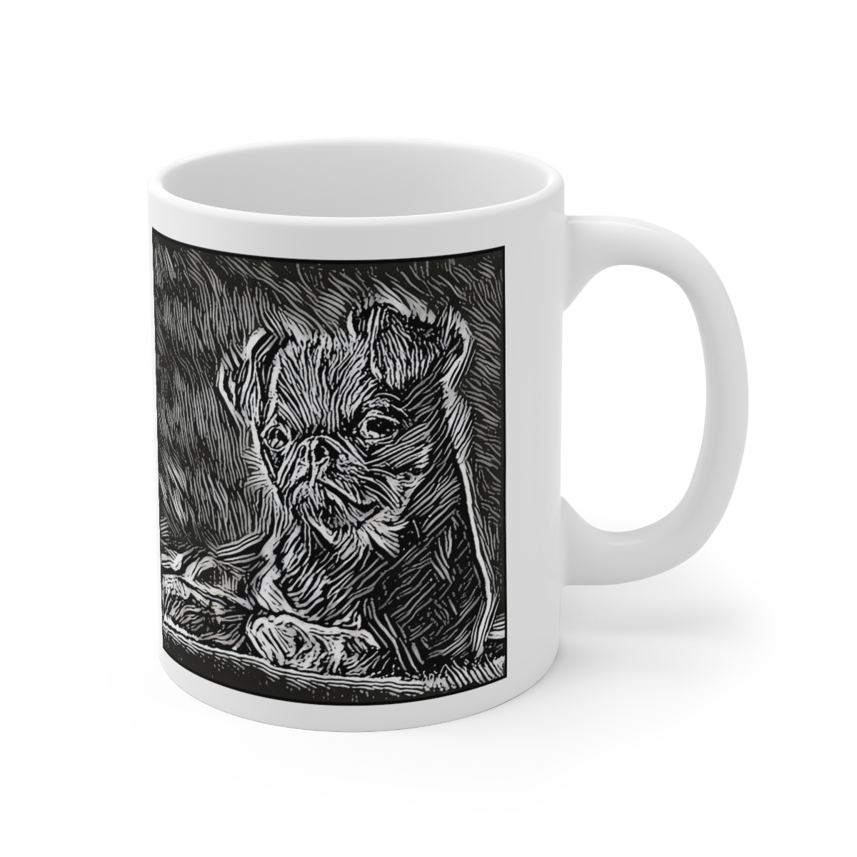 Keep cozy and warm with a nice cuppa, featuring the beloved Brussels Griffon dog breed stylized in our Coloromo Licorice Lines art on a ceramic mug. Lead and BPA-free, these durable mugs are also microwave & dishwasher-safe. Made of white, resilient ceramic in an 11-ounce size, this is the perfect gift for coffee, tea, and hot chocolate lovers.