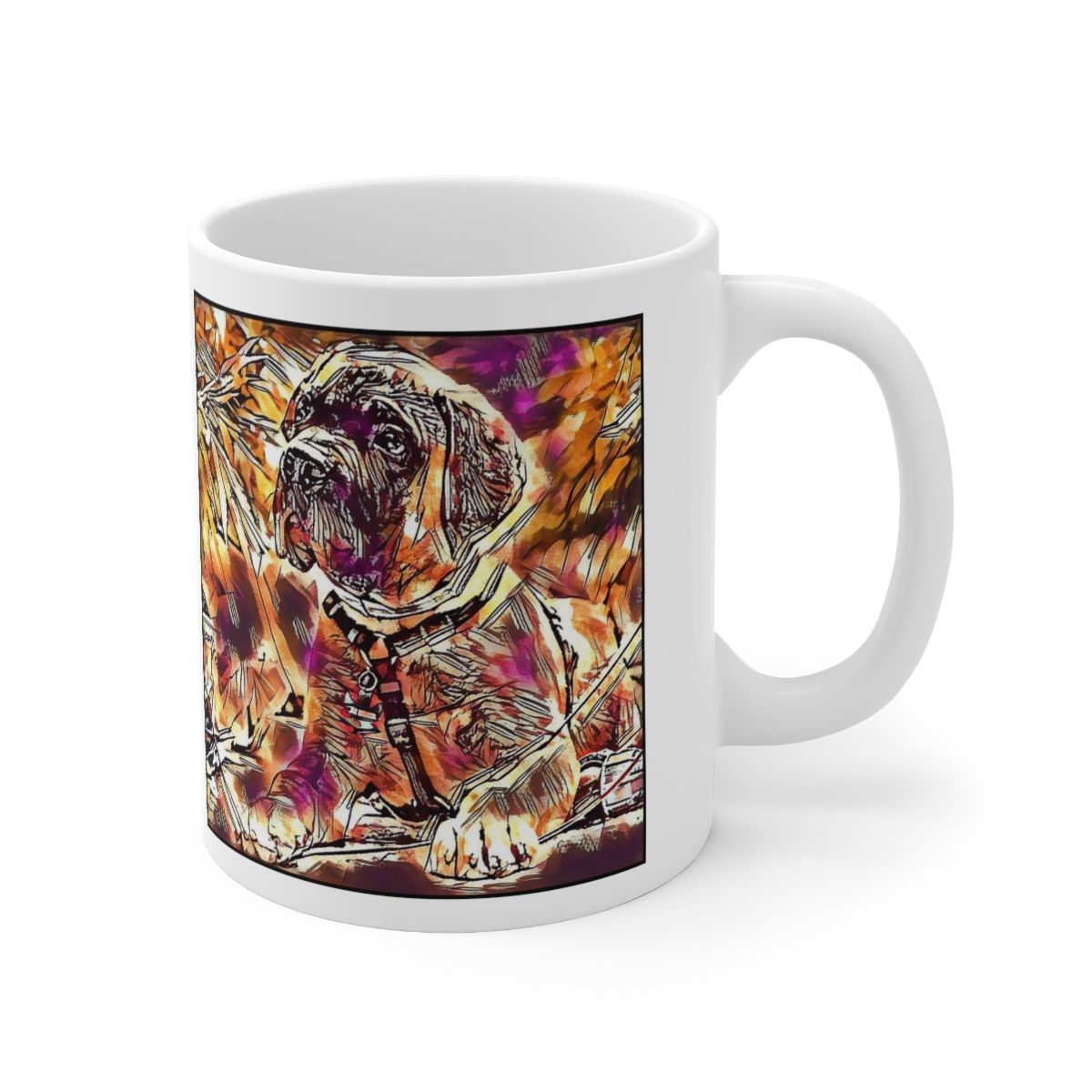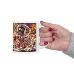 Keep cozy and warm with a nice cuppa, featuring the beloved Bull Mastiff dog breed stylized in our Coloromo Hipster art on a ceramic mug. Lead and BPA-free, these durable mugs are also microwave & dishwasher-safe. Made of white, resilient ceramic in an 11-ounce size, this is the perfect gift for coffee, tea, and hot chocolate lovers.