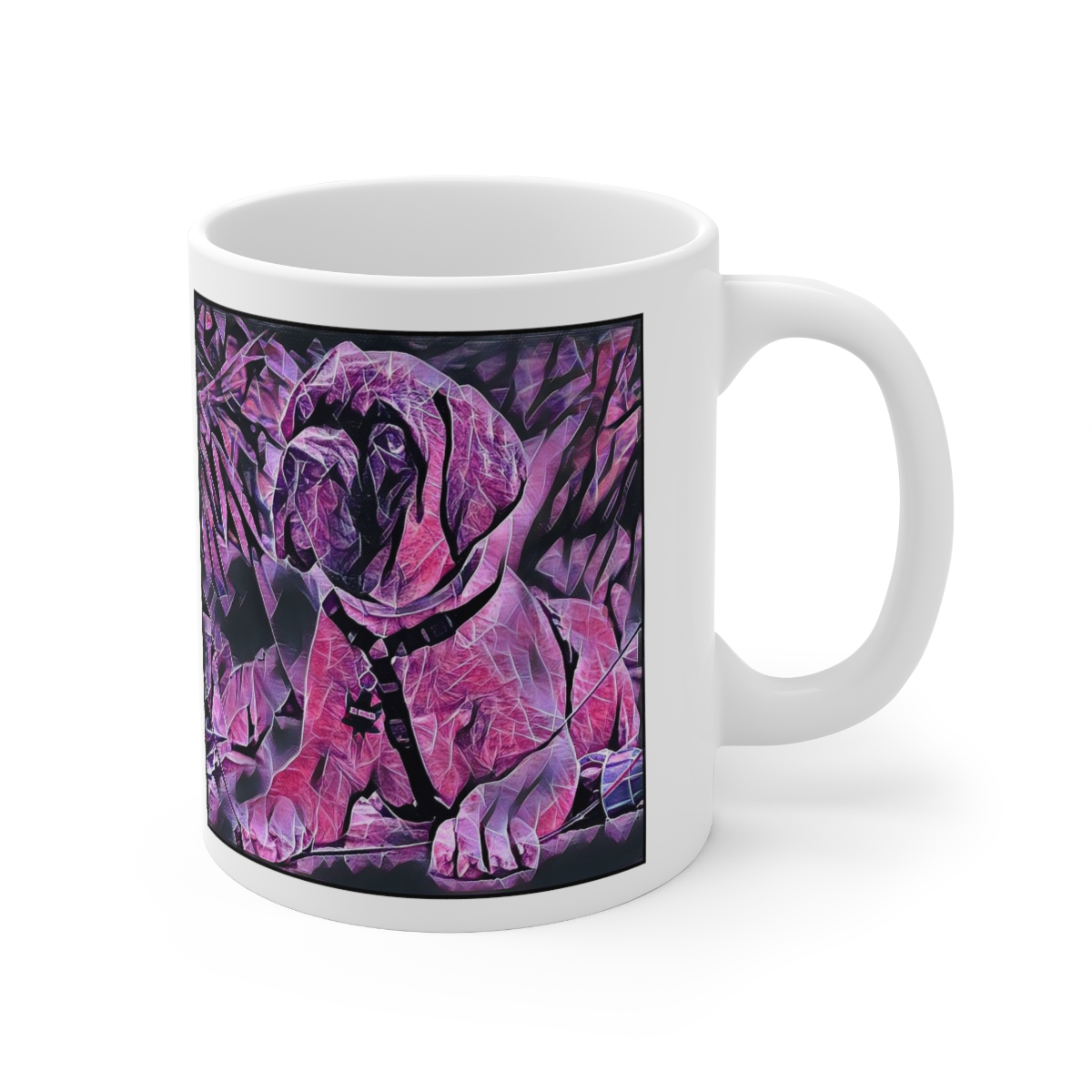 Keep cozy and warm with a nice cuppa, featuring the beloved Bull Mastiff dog breed stylized in our Coloromo Violet Femmes art on a ceramic mug. Lead and BPA-free, these durable mugs are also microwave & dishwasher-safe. Made of white, resilient ceramic in an 11-ounce size, this is the perfect gift for coffee, tea, and hot chocolate lovers.